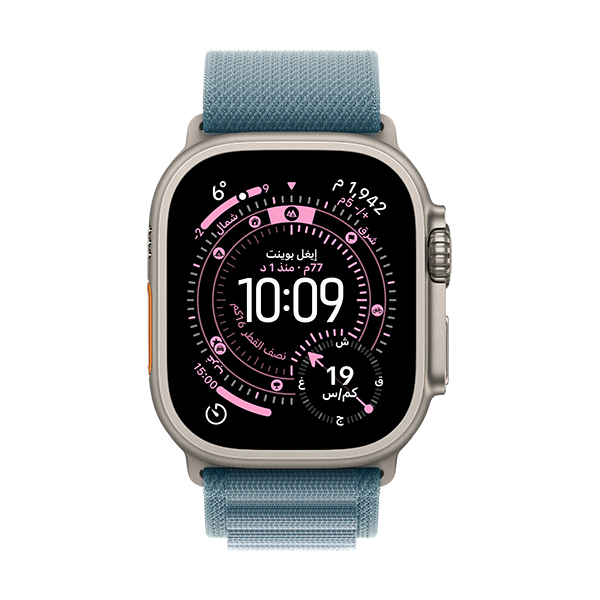 ساعة أبل الترا  3 جي بي اس مقاس 49 مم تيتانيوم مع خاصية الإتصال سوار أزرق متوسط
